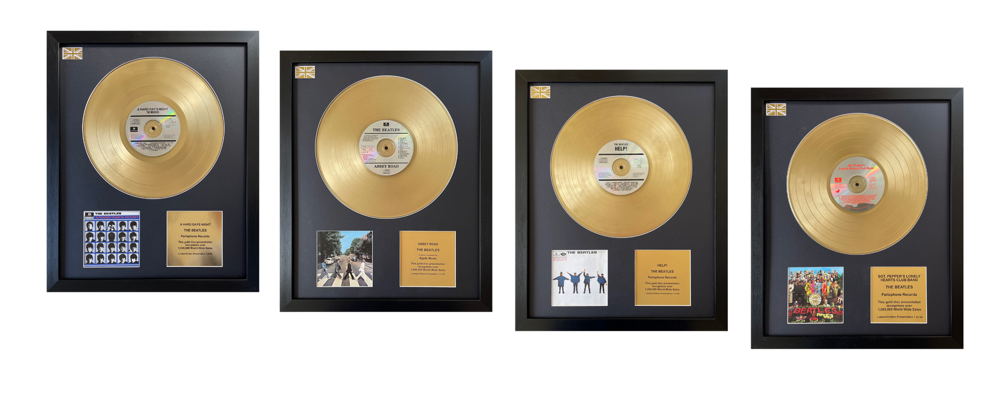 - An Iconic Library - The Beatles Bundle includes gold record presentations of A Hard Day's Night, Abbey Road, Help! and Sgt. Pepper's Lonely Hearts Club Band.