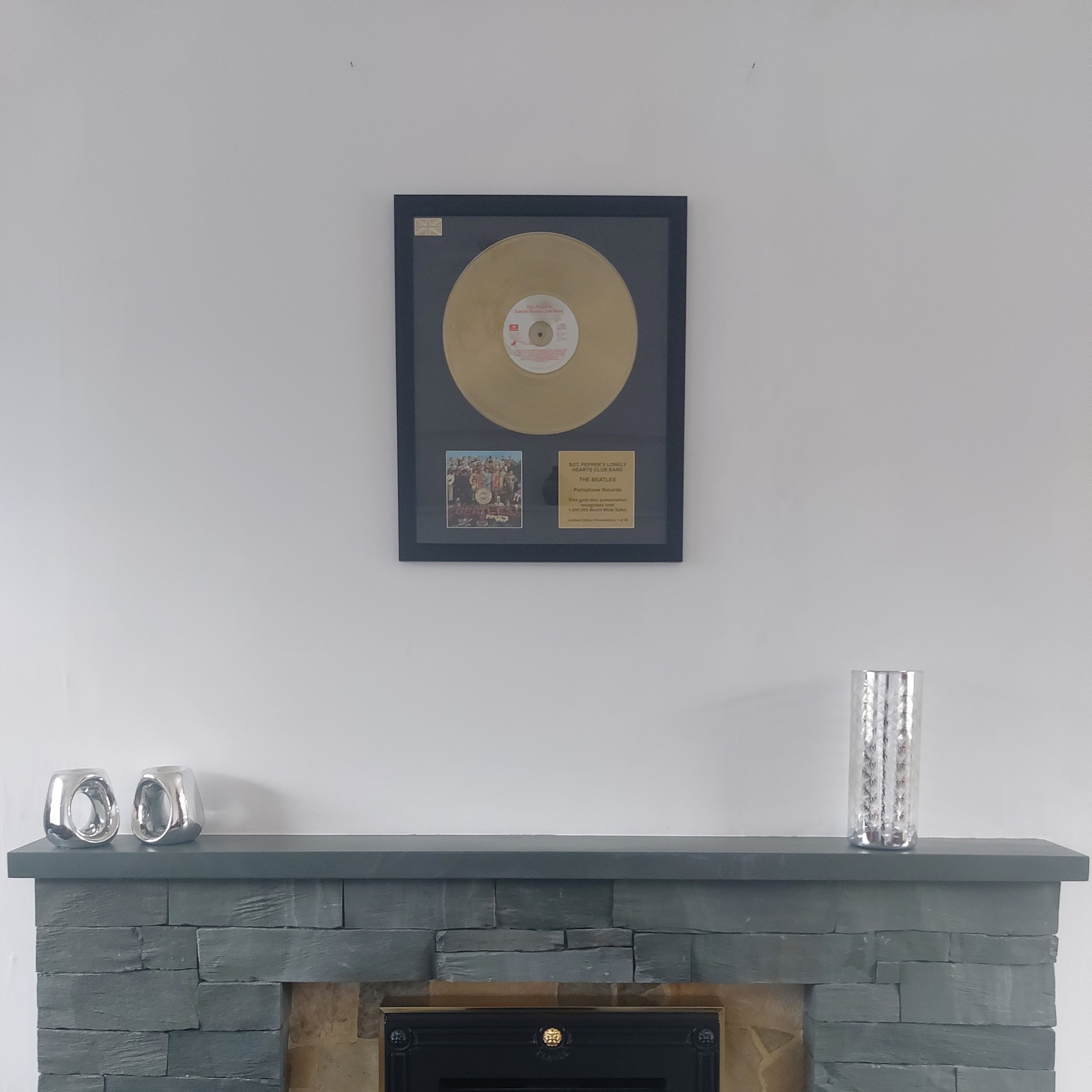 This stunning & striking Sgt. Pepper's Lonely Hearts Club Band framed gold record CD presentation will brighten up any room and showcase your interests & personality. Order yours today and it will arrive promptly at your doorstep ready to hang.